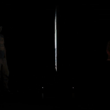 Two animations of a destructive spider are projected on both sides of a revolving wall. The viewer can at any time see only one side – but simultaneously hears both. This dualistic setup puts the audience in a state of wonder, as they need to constantly decide which side they look at.